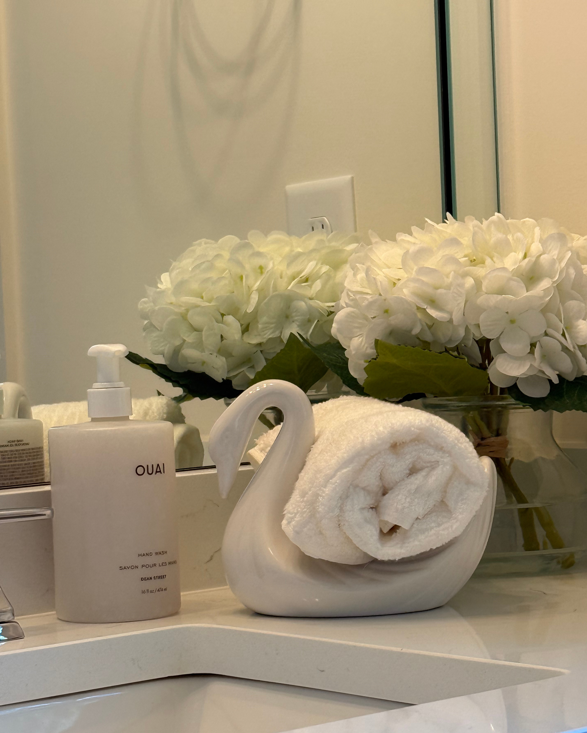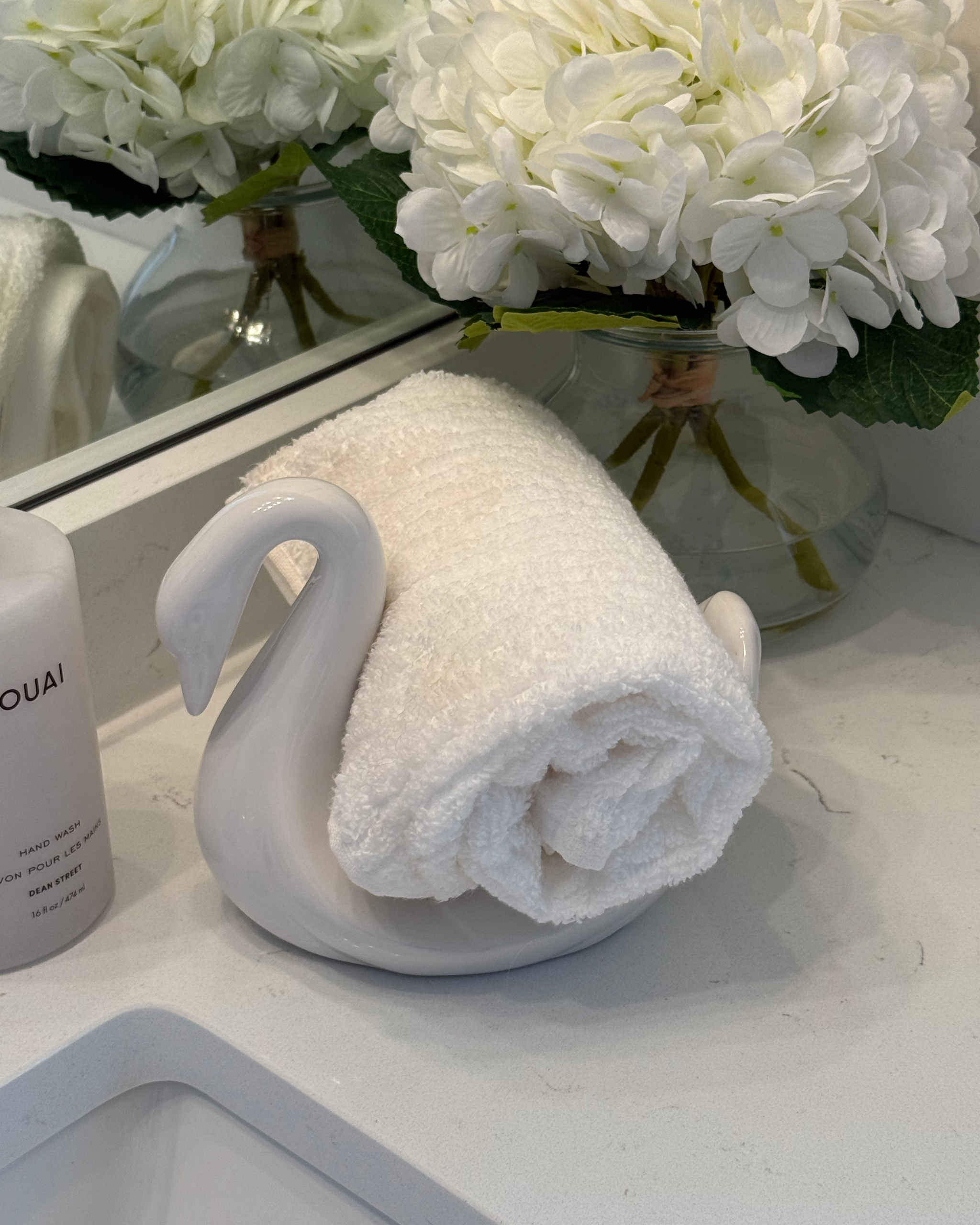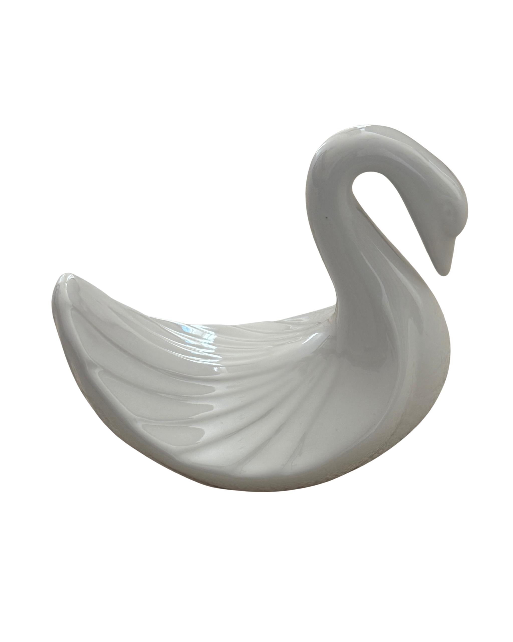 A vintage 1980s white ceramic swan reimagined as the ultimate bathroom accent. This sculptural piece doubles as a towel holder, blending function with elegance. Its glossy finish and graceful curves make it the perfect quiet luxury touch for your vanity or guest bath. A timeless collectible that turns everyday rituals into something special.