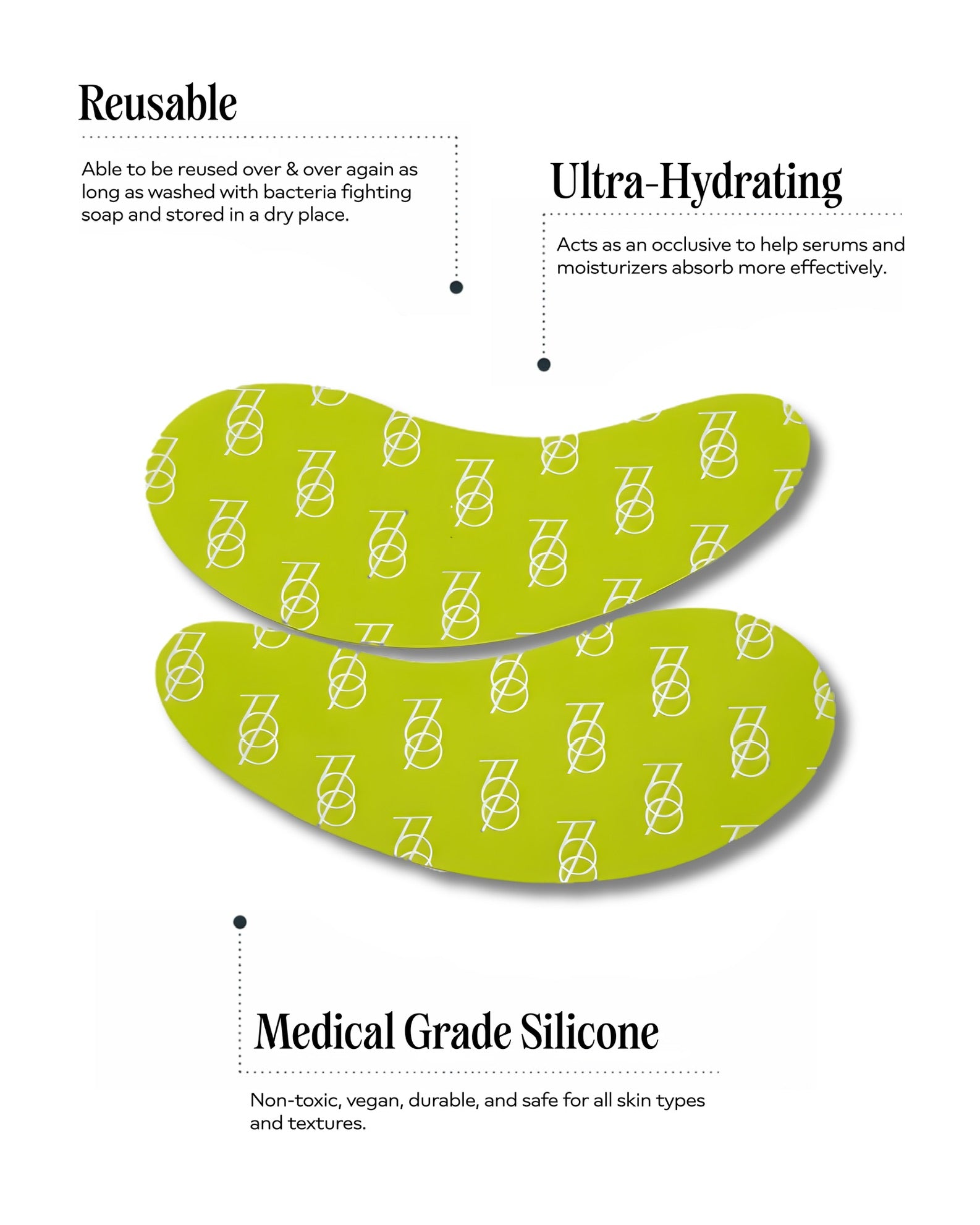 Think of these as your Dew or Dry Moisturizer’s under-eye enhancer. Our silicone under-eye patches are designed to be worn under Dew or Dry to boost hydration where skin needs it most—helping the moisturizer sink in deeper, boost efficacy, and leave the under-eye looking extra dewy, smooth, and refreshed.